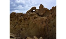 阿克蘇拜城縣鐵熱克鎮(zhèn)境內(nèi),距縣城38公里,交通便利。地理坐標(biāo)81°32′27″E,41°58′00″N,海拔1670米。石腳印位于卡普斯浪河左岸一級(jí)地上,在它旁邊是一深切小溝谷,源頭為一苦泉,沿第三紀(jì)砂巖裂縫向外滴流。據(jù)說(shuō)此苦泉水可治眼病,每年都有許多本地群眾前來(lái)洗眼治病,石腳印在一橢圓形的深褐色火巖礫石上,為一深陷的左腳印,印紋深約3厘米,長(zhǎng)約28厘米,寬約9.5厘米。