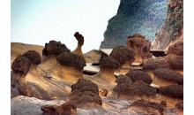 野柳風(fēng)景區(qū)位于臺灣省基隆市西北方約15公里處的基金公路,是一突出海面的岬角(大屯山系),遠(yuǎn)望如一只海龜蹣跚離岸,昂首拱背而游,因此也有人稱之為野柳龜。受造山運(yùn)動的影響,深埋海底的沉積巖上升至海面,產(chǎn)生了附近海岸的單面山、海蝕崖、海蝕洞等地形,海蝕、風(fēng)蝕等在不同硬度的巖層上作用,形成蜂窩巖、豆腐巖、蕈狀巖、姜狀巖,風(fēng)化窗等世界級的巖層景觀。