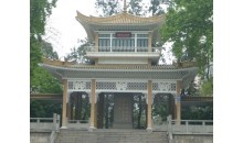 中朝人民血誼亭位于廣州起義烈士陵園內(nèi)東面,與中蘇人民血誼亭相對。建于1964年,坐南朝北。建筑平面呈“凹”字形,占地面積約3000平方米。黃色琉璃瓦,鋼筋混凝土結構。主亭面闊三間12.85米,進深三間13.06米,高二層,四角攢尖頂。上懸“中朝人民血誼亭”匾額。兩側各有總長為33.7米的曲尺型長廊,兩廊各連接面闊6米,進深5.5米的卷棚歇山頂副亭,平面呈方形。