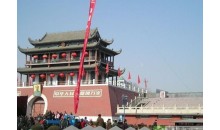又稱“南門樓”,位于寧夏銀川城東南的南環(huán)東路與中山南街交叉口上,坐北朝南,面臨廣場。門樓通高27.5米,下為高7米的長方形券門洞臺基(東西長37米,南北寬28.1米),臺基北面門洞兩側(cè)筑有對稱臺階,以便登臨其上。高大臺座上是歇山頂?shù)亩又亻軜情w,高20.5米。