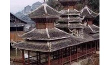 地坪風(fēng)雨樓 這是貴州省最大、造型最美的風(fēng)雨橋。長(zhǎng)達(dá)50多米的地坪風(fēng)雨橋始建于清光緒二十年即公元1894年,1959年毀于火災(zāi),1964年重建。整座橋不用一釘一鉚,而運(yùn)用杠桿力學(xué)原理,將大小不一的柱、枋、檁、凳、欄桿等全部用杉木鑿榫穿枋構(gòu)成。橋體為長(zhǎng)廊式木結(jié)構(gòu),橋上有一大兩小共三座橋樓。居中的大橋樓是鼓樓式建筑,兩邊的橋樓皆為三層重檐雙斜面屋頂。