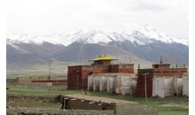 貢薩寺位于距青海玉樹(shù)州治多縣城西9公里、海拔4300米的嘉吉阿尼噶寶山坡上,是12世紀(jì)由拔噶舉派的創(chuàng)始人拔達(dá)瑪旺秀的心傳弟子秋杰次成幫巴創(chuàng)建,由此產(chǎn)生秋杰活佛轉(zhuǎn)世系統(tǒng)?!〉诙狼锝芩髂显蛿U(kuò)建寺院并改宗為直貢噶舉派。公元15世紀(jì),五世達(dá)賴昂旺洛楹嘉措又將該寺改宗為格魯派寺院。1981年寺院從治多縣城北面鬧布旺江舊址搬遷到現(xiàn)在的新址。
