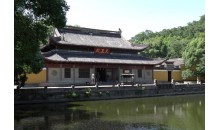 阿育王寺是我國現(xiàn)存唯一以阿育王命名的千年古剎。其地在今寧波市東20公里,鄞縣五鄉(xiāng)鎮(zhèn)寶幢。寺之座落方位,在鄮山分支育王山之西麓。面對玉幾山,左界育王嶺,右是赤瑩山峽谷。三山擁處,吉林參天,修竹蔽日。西望古剎,寺在山奧之底,南而遠眺,俱在峰巒之中,有世外桃源之感。加之四周翠崗蜿蜒,群陵起伏,稱之為“六殊勝八吉樣地”實非虛言。