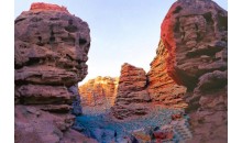 進(jìn)入峽谷漸行漸遠(yuǎn),眼前景致的獨特讓人感到無比驚訝,只有發(fā)自內(nèi)心地贊嘆大自然的鬼斧神工,不由地想起兩句古詩:遠(yuǎn)看成嶺側(cè)成峰,遠(yuǎn)近高低各不同。同一座山峰,從不同角度看、從不同的人眼中看,風(fēng)景都不一樣,甚至有藝術(shù)靈感的人可以運(yùn)用抽象思維,讓面前的山峰變幻成更多畫面,而自己的思想就像野馬馳騁在寬闊的原野上,在抽象世界冥想,沉浸其中無法自拔。