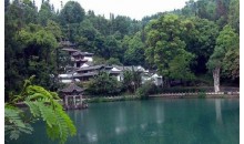 梨花塢又名大梨園,塢中建有同名寺院,主建筑慈云閣層樓高聳,飛檐翼然,古樸莊嚴(yán),為大慈大悲觀世音菩薩安享人間香火之所;附屬建筑藏經(jīng)樓、讀畫樓、醉月樓、菩提樓、養(yǎng)云池、雨花亭、瑞雪嶺等亭臺(tái)樓閣皆依山構(gòu)筑,錯(cuò)落有致而又此呼彼應(yīng)地構(gòu)成一個(gè)嚴(yán)整的建筑群體。寺前一彎山溪如吟似奏